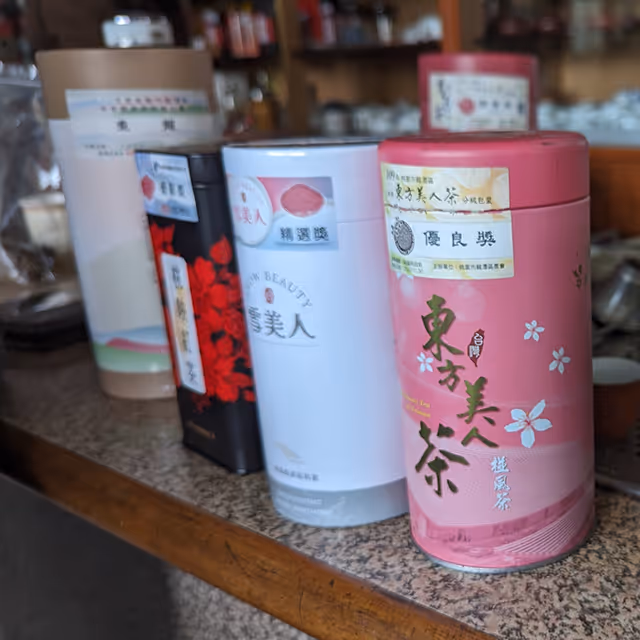 義和茶廠販售之茶葉罐⼀覽。